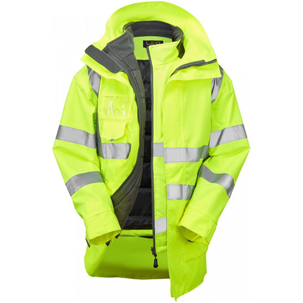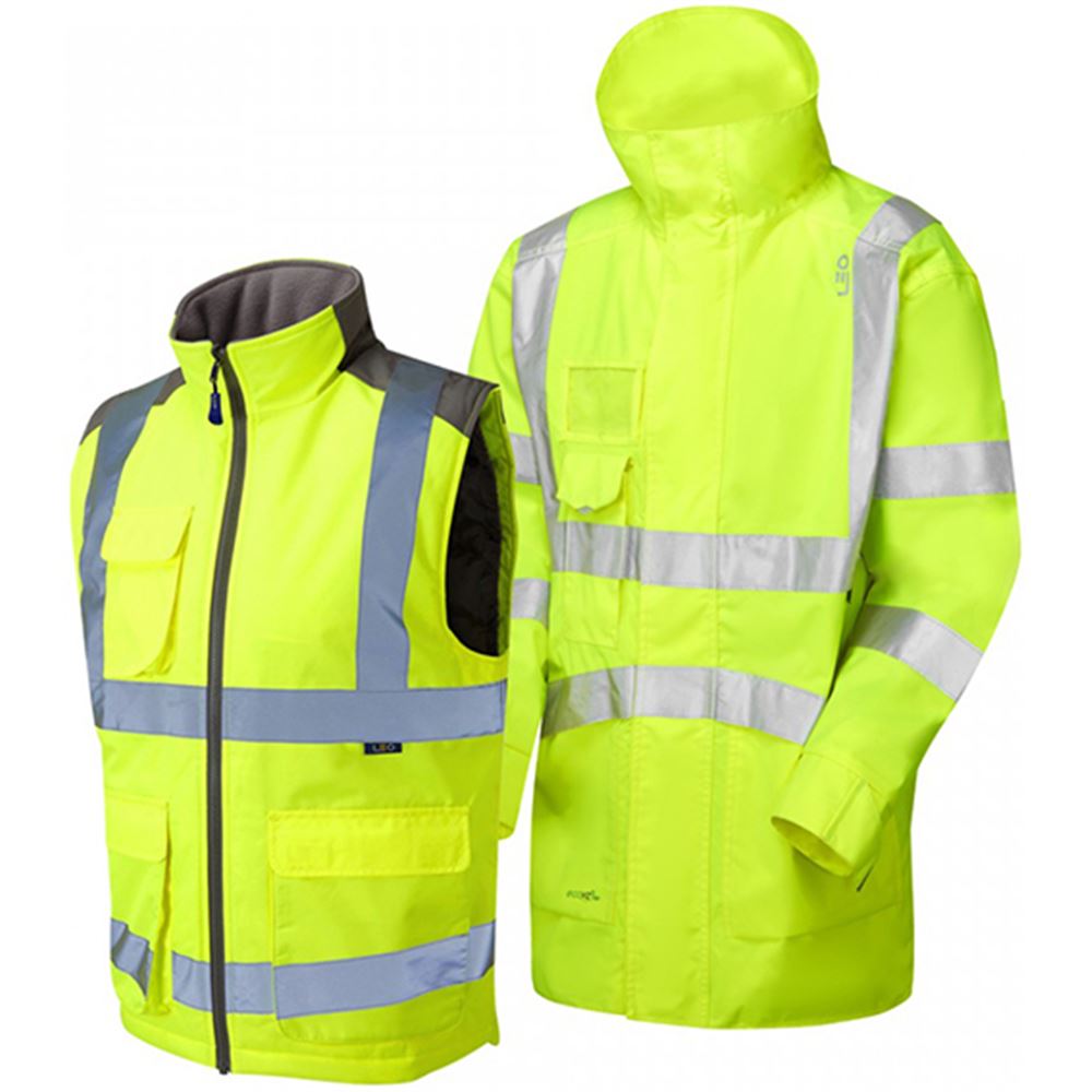 Leo Workwear Yellow Waterproof Breathable 3-in-1 Hi Vis Clovelly Jacket with Torrington Bodywarmer