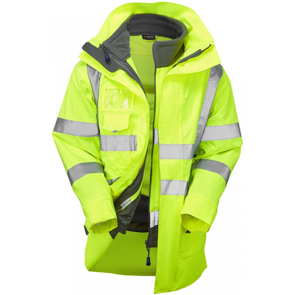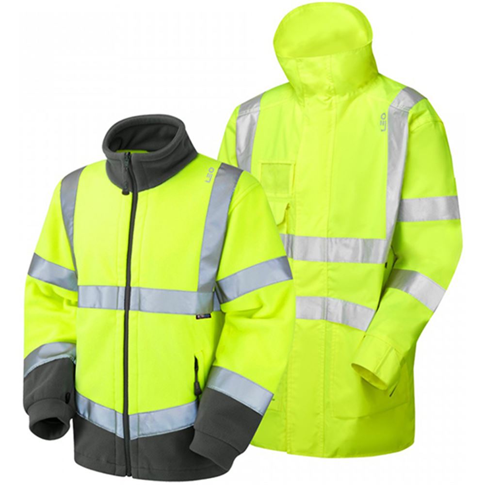 Leo Workwear Yellow Waterproof Breathable 3-in-1 Hi Vis Clovelly Jacket with Hartland Fleece