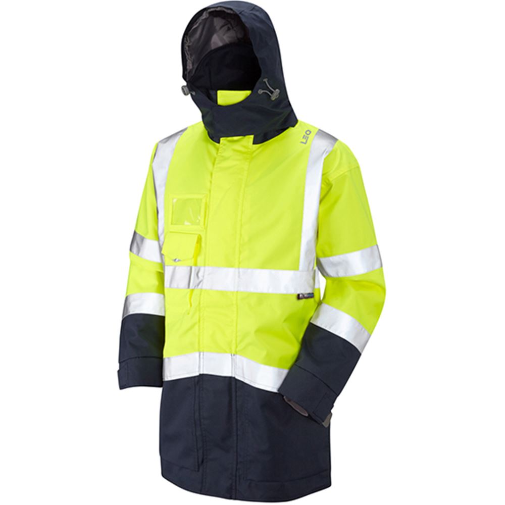 Leo Workwear Clovelly Yellow/Navy Mesh Lined Waterproof Breathable Executive Hi Vis Jacket