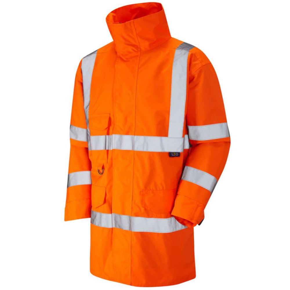 Leo Workwear Torridge Orange Mesh Lined Breathable Waterproof Hi Vis Jacket