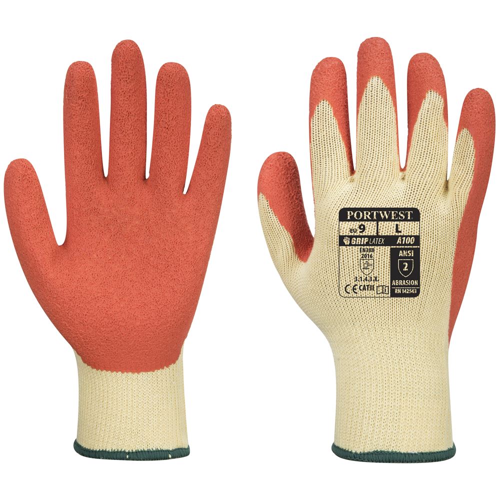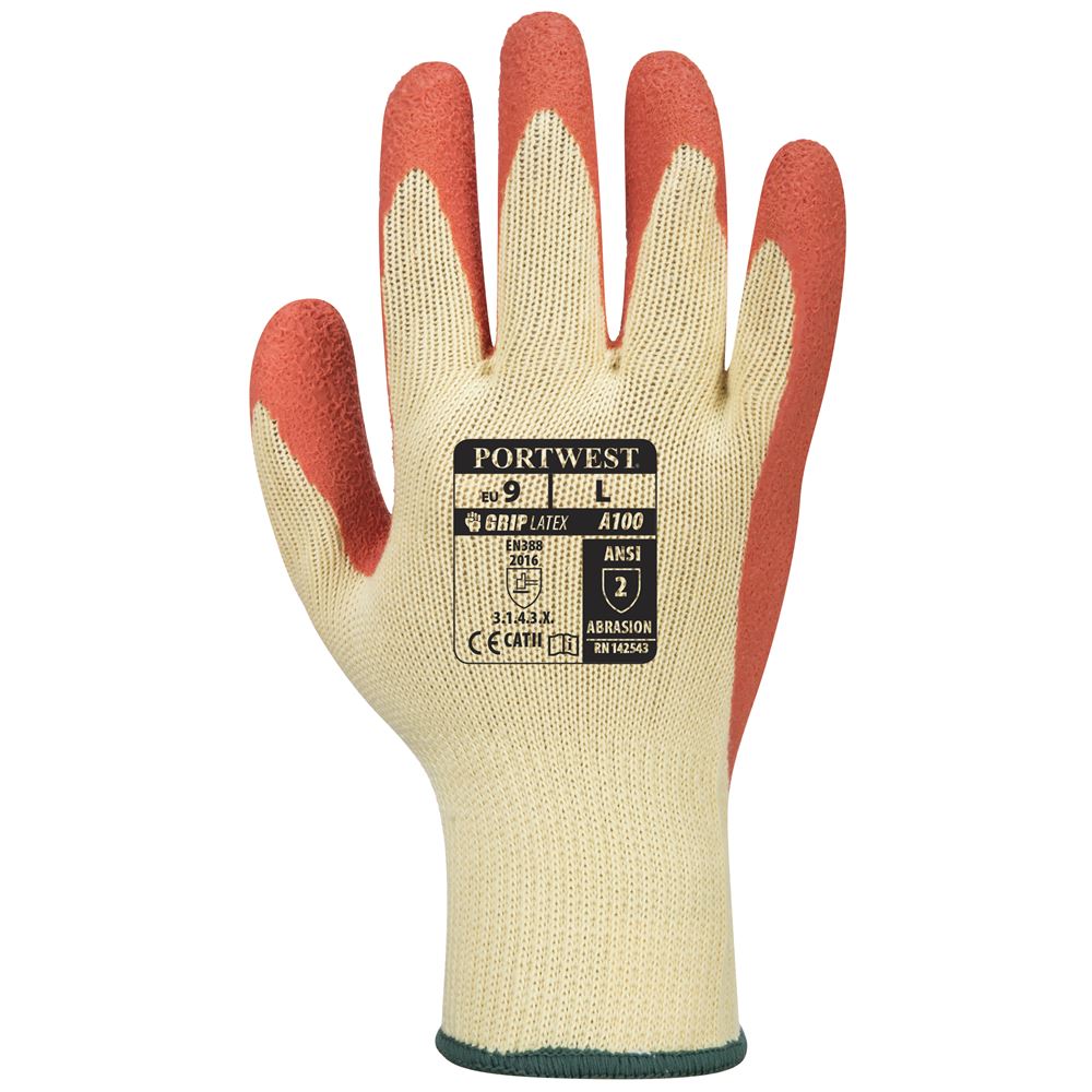 Portwest A100 Premium Orange Latex Grip Gloves - 10g