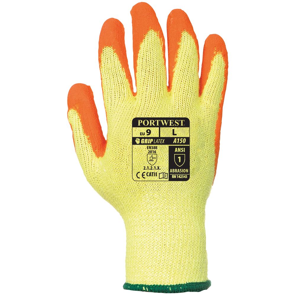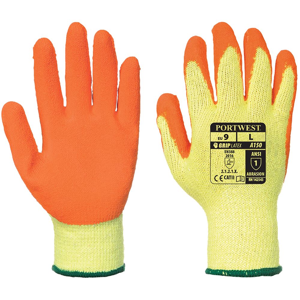 Portwest A150 Classic Orange Latex Grip Gloves - 10g