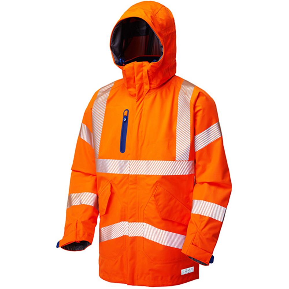 Leo Workwear Marisco Orange LTEC 20K High Performance Waterproof Breathable Hi Vis Jacket