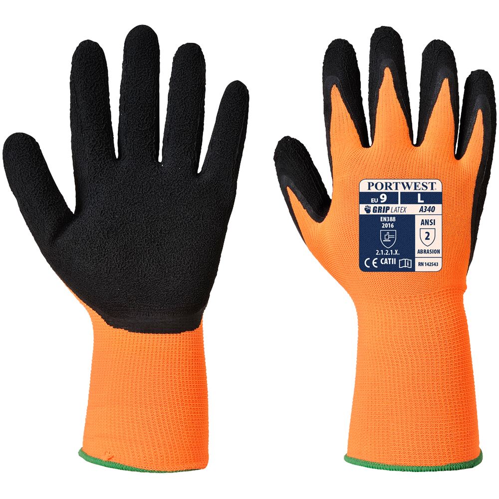Portwest A340 Hi Vis Grip Gloves Longer Cuff with Latex Foam Coating - 13g