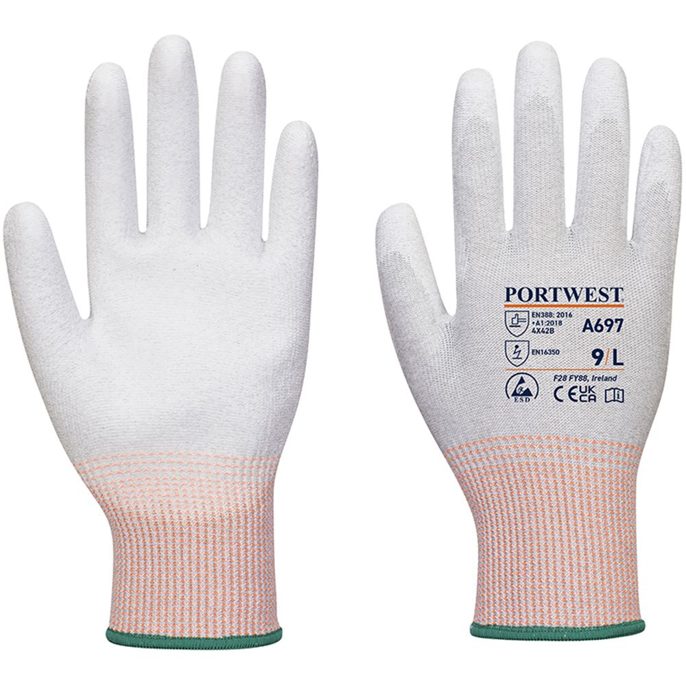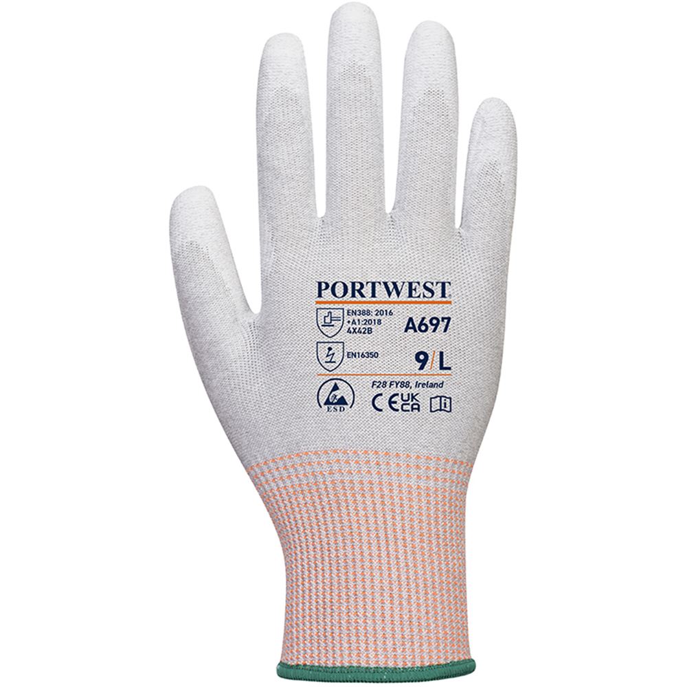 Portwest A697 LR13 ESD Antistatic Cut B Gloves with PU Palm Coating - 13 gauge (Pack 12)