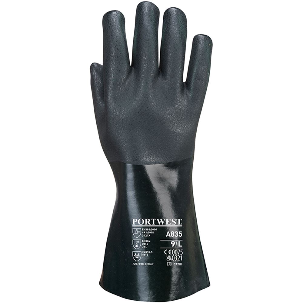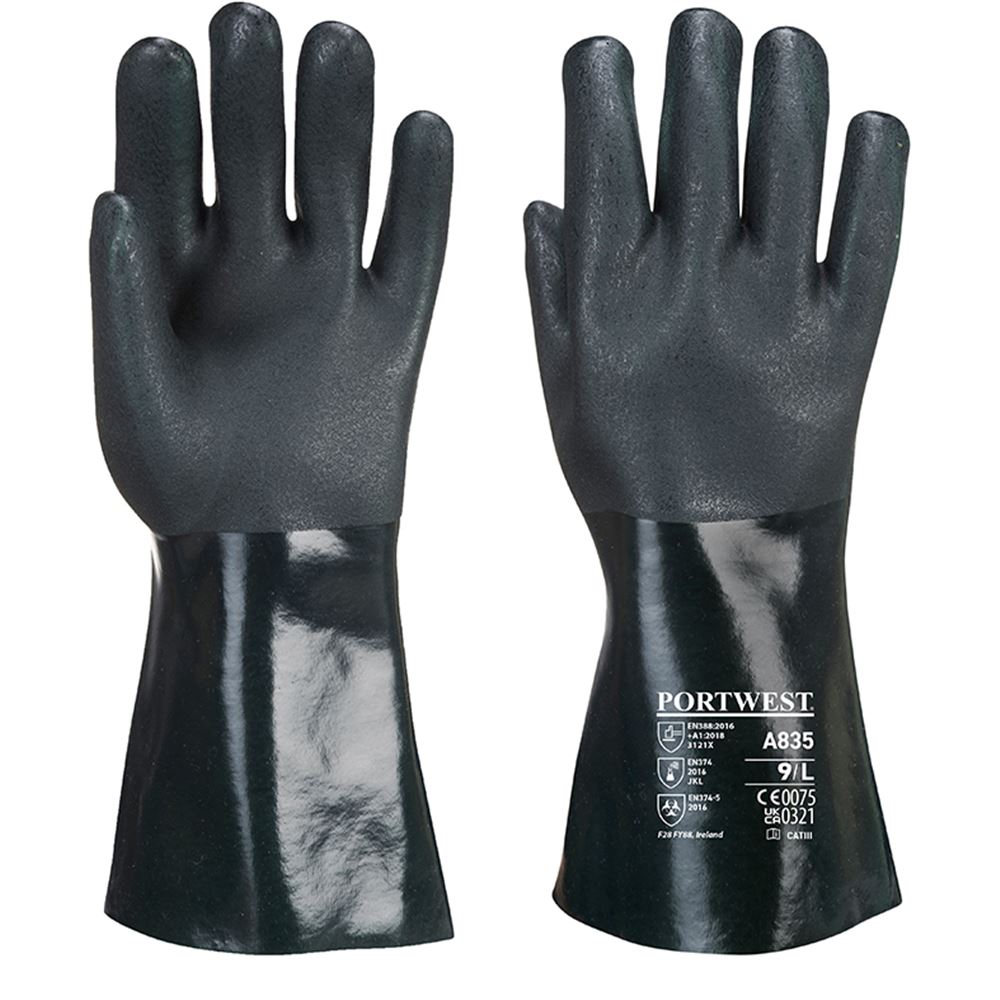 Portwest A835 Double Dipped PVC Chemical Resistant Gauntlet Gloves 35cm with Sandy Palm Finish