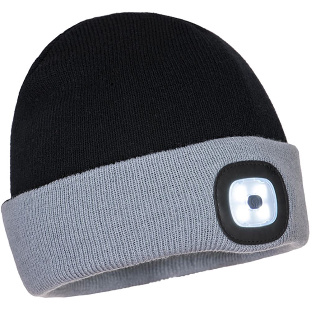 Portwest B034 Black & Grey Two Tone LED Rechargeable Beanie