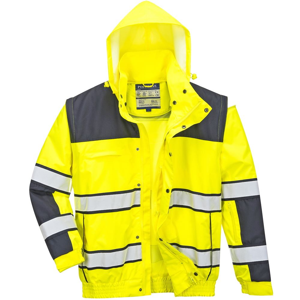 Portwest C466 Yellow Fur Lined Waterproof 3 in 1 Hi Vis Bomber Jacket