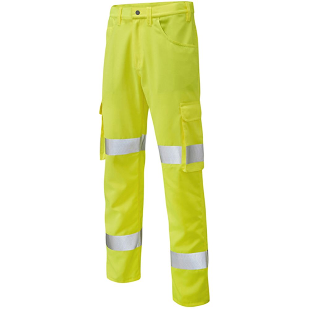 Leo Workwear Yelland Yellow Lightweight Polycotton Hi Vis Cargo Trouser