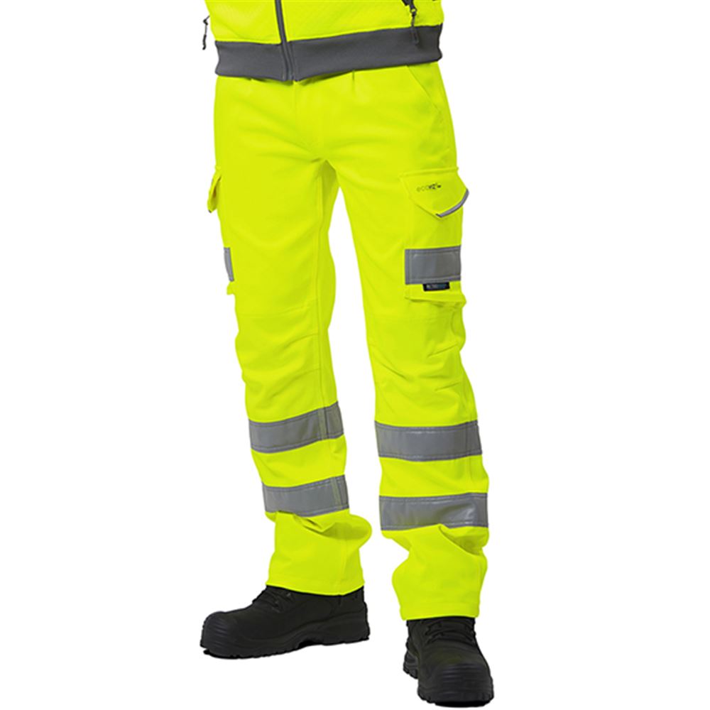 Leo Workwear Kingford Yellow EcoViz Stretch Polycotton Hi Vis Cargo Trouser