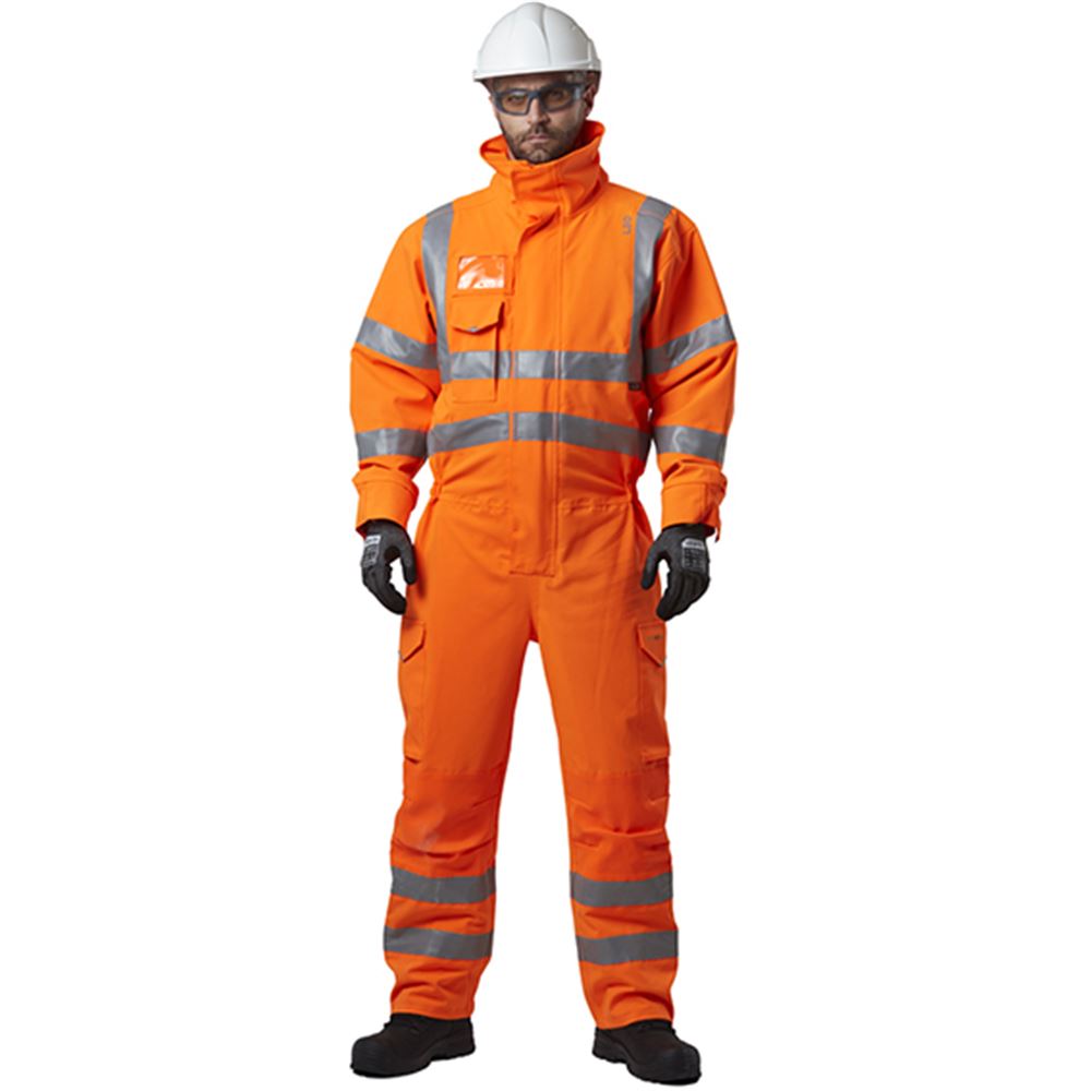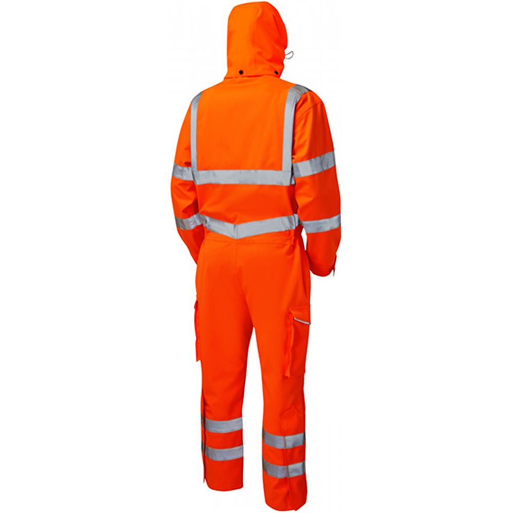 Leo Workwear Watertown Orange EcoViz 10KX Waterproof Breathable Stretch Hi Vis Coverall
