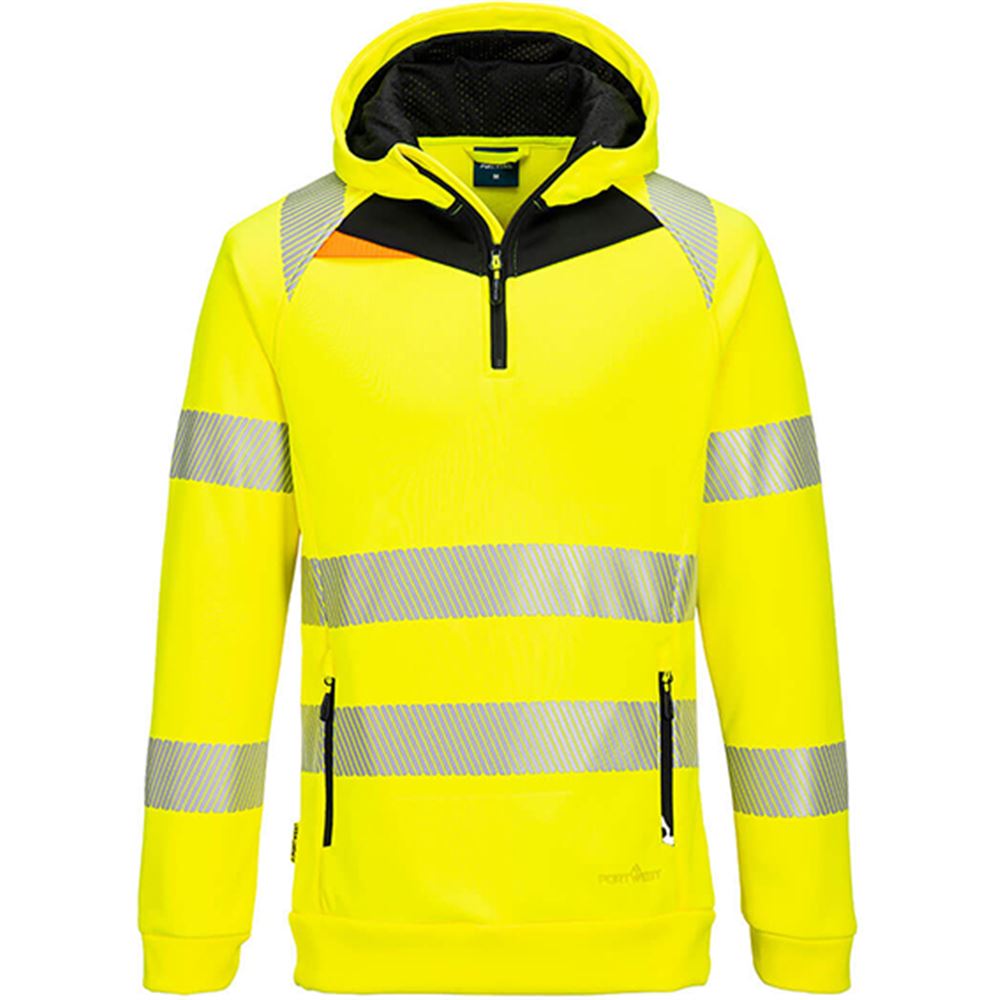 Portwest DX482 DX4 Yellow Lined Stretch 1/4 Zip Hi Vis Hoodie