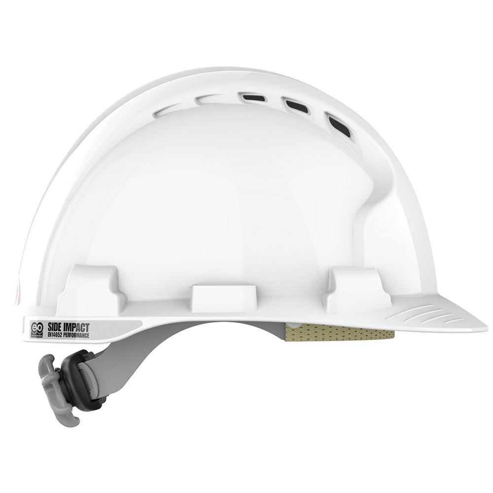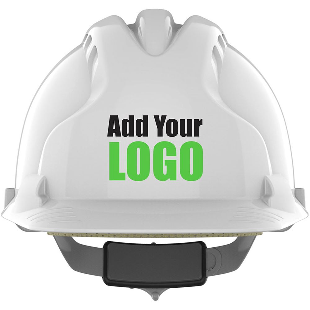 JSP EVO8 EN14052 Custom Printed Safety Helmet - Vented Wheel Ratchet Standard Peak