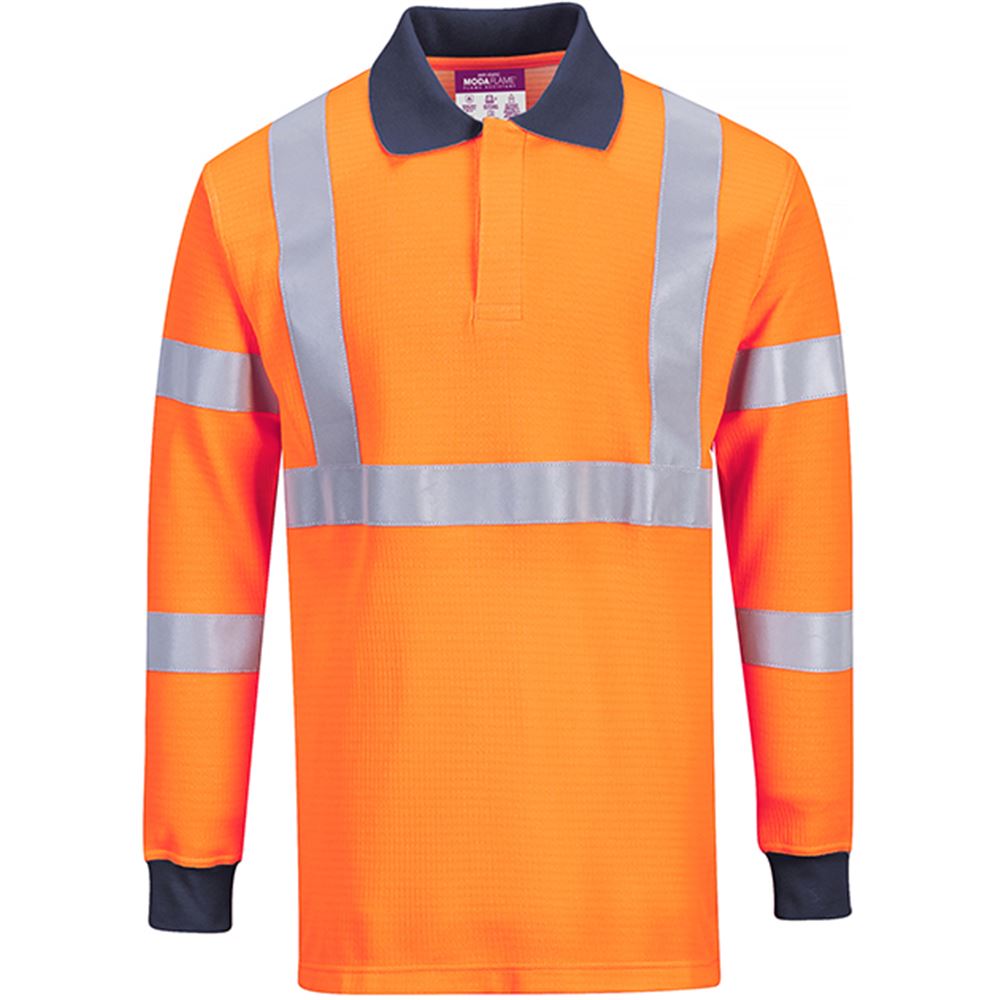 Portwest FR76 Orange Modaflame Knit Inherent Flame Resistant Anti Static Arc Hi Vis Long Sleeve Polo Shirt
