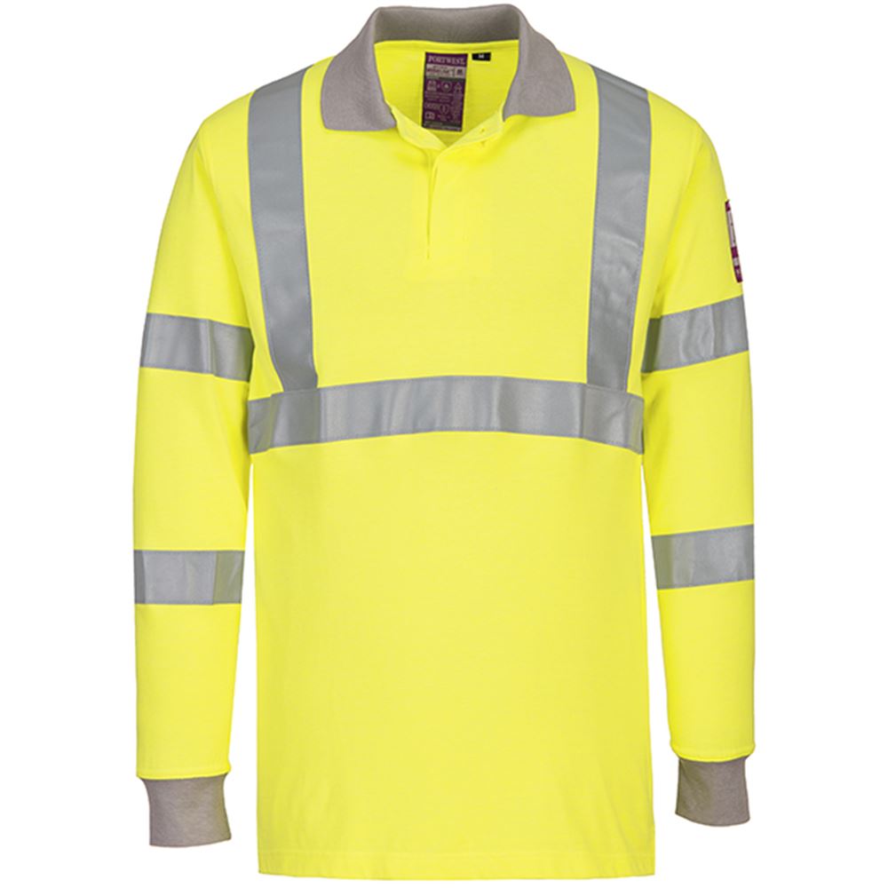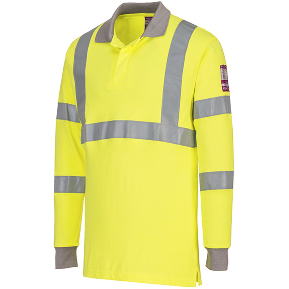 Portwest FR77 Yellow Modaflame Knit Flame Resistant Anti Static Long Sleeve Hi Vis Polo Shirt