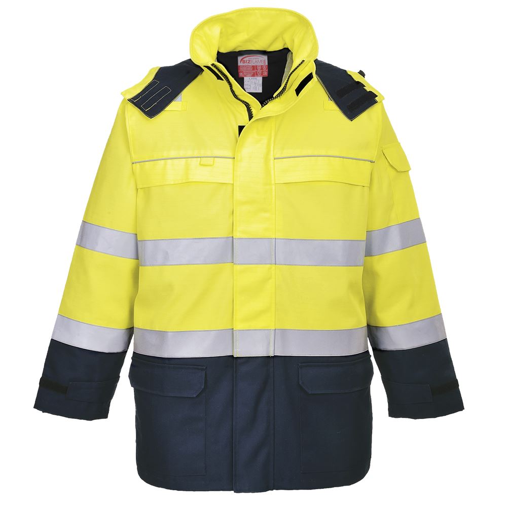 Portwest FR79 Yellow/Navy Bizflame Multi Rain Lined Waterproof Flame Resistant Anti Static Arc Hi Vis Jacket