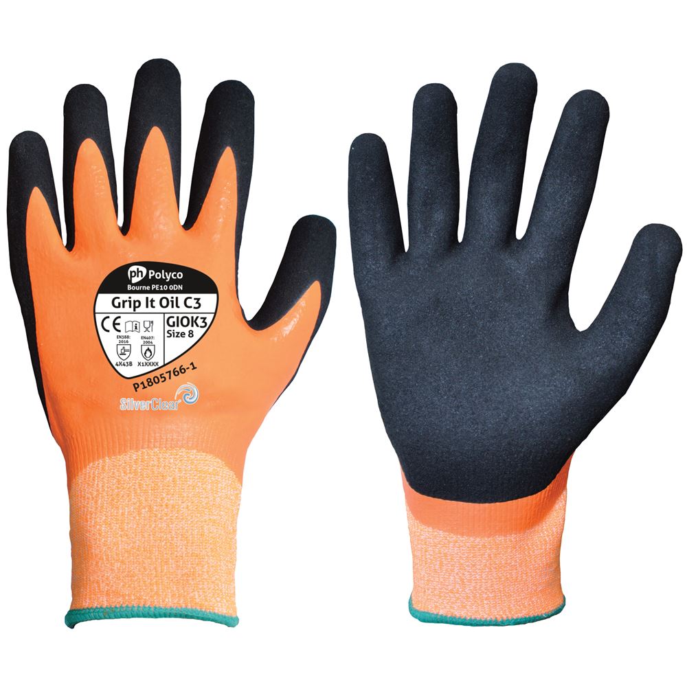 Polyco Grip It Oil C3 Cut B Cut Resistant Gloves GIOK3 with Nitrile Coating - 13g