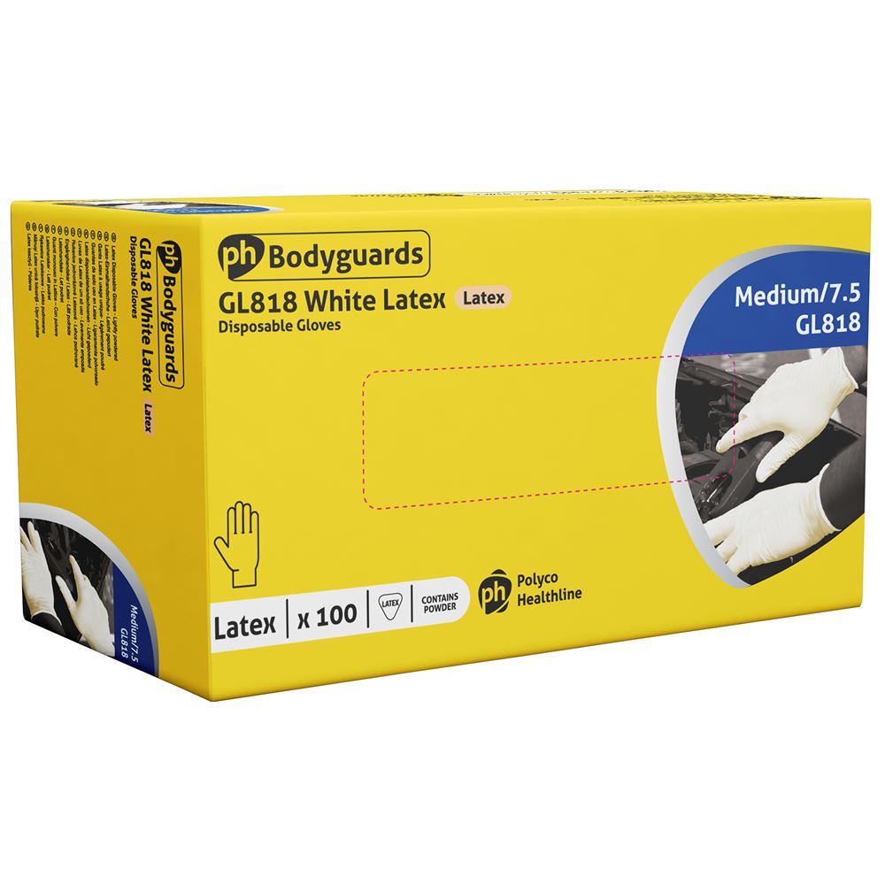 Polyco Bodyguards GL818 Latex Powdered Disposable Glove AQL1.5 Box100