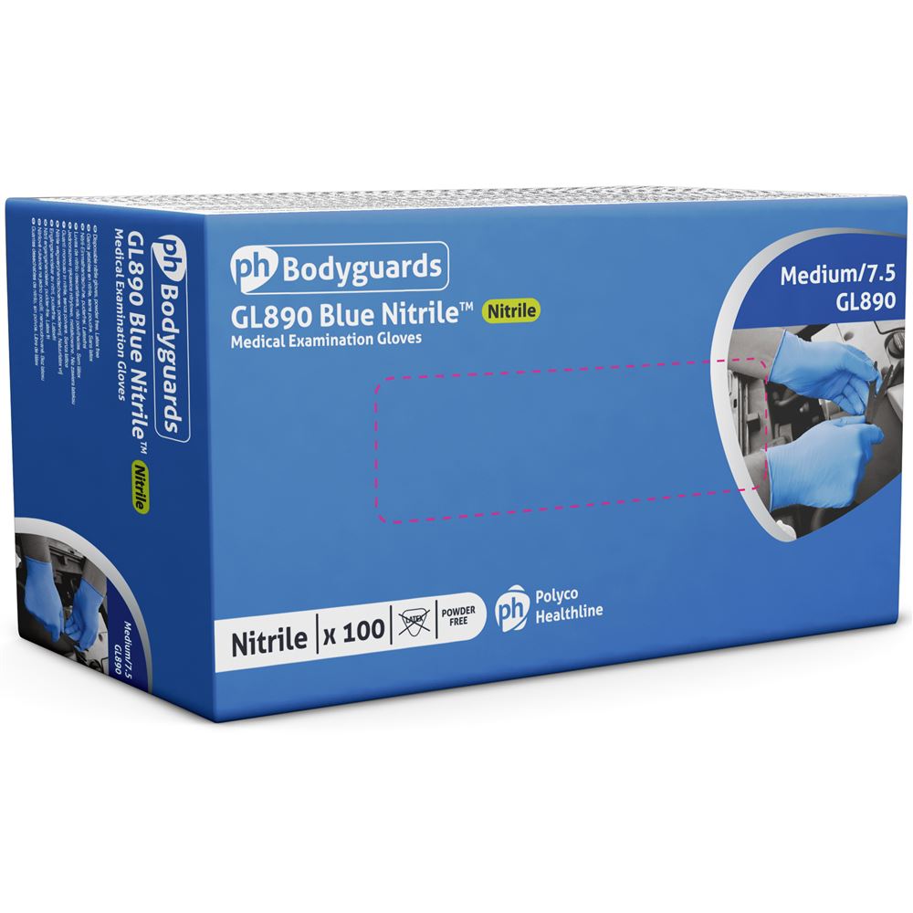 Polyco Bodyguards GL890 Blue Nitrile Powder Free Disposable Glove AQL1.5 (Box 100)
