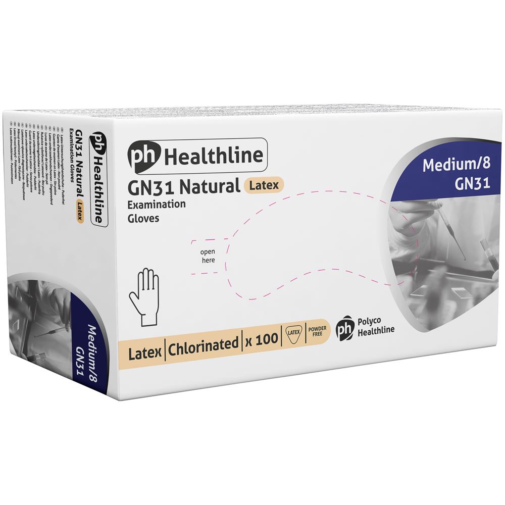 Polyco GN31 Natural Latex Powder Free Examination Glove AQL1.5 Box 100