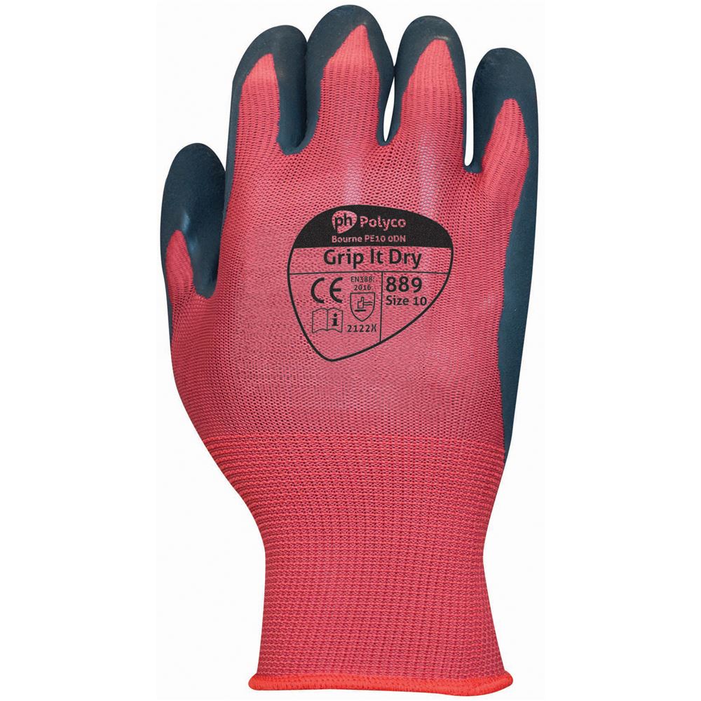 Polyco Grip It Dry Work Gloves 889 with Sponge Latex Coating - 13g