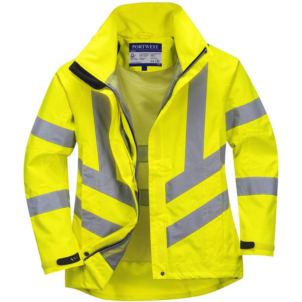 Portwest LW70 Yellow Womens Mesh Lined Waterproof & Breathable Hi Vis Jacket