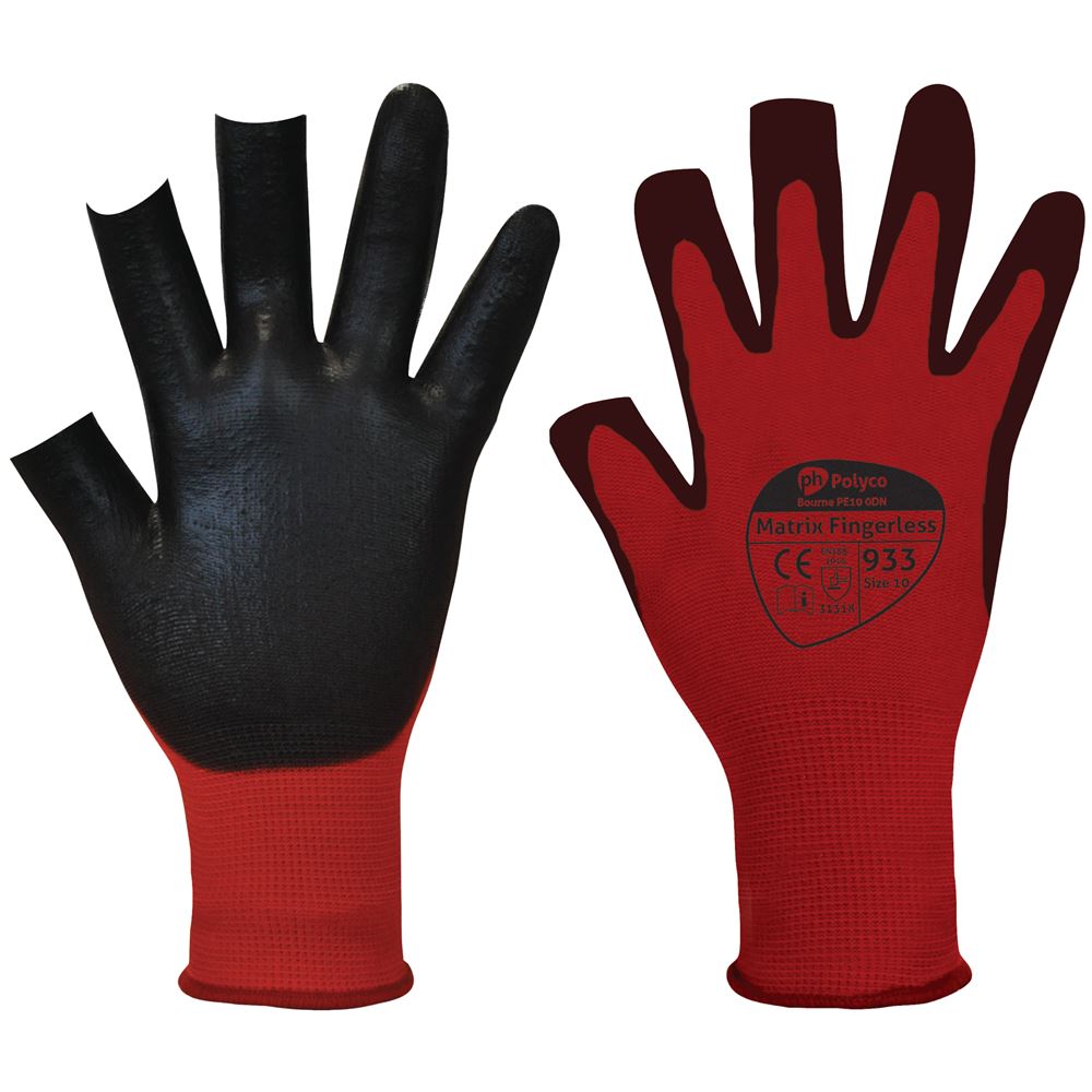 Polyco Matrix Fingerless Work Gloves 933 with PU coating - 13g
