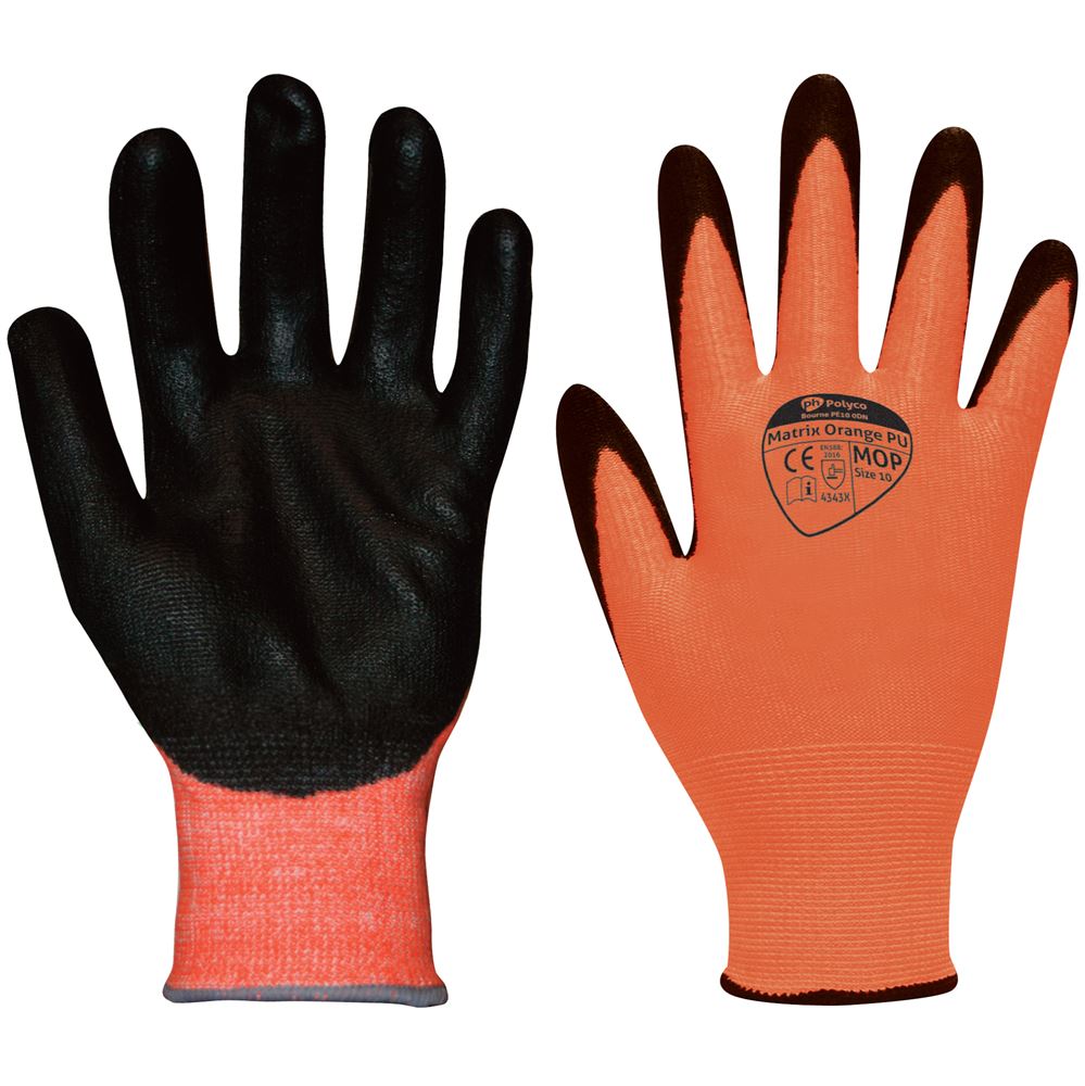 Polyco Matrix Orange PU Work Gloves MOP with PU Coating - 15g Cut Level 3