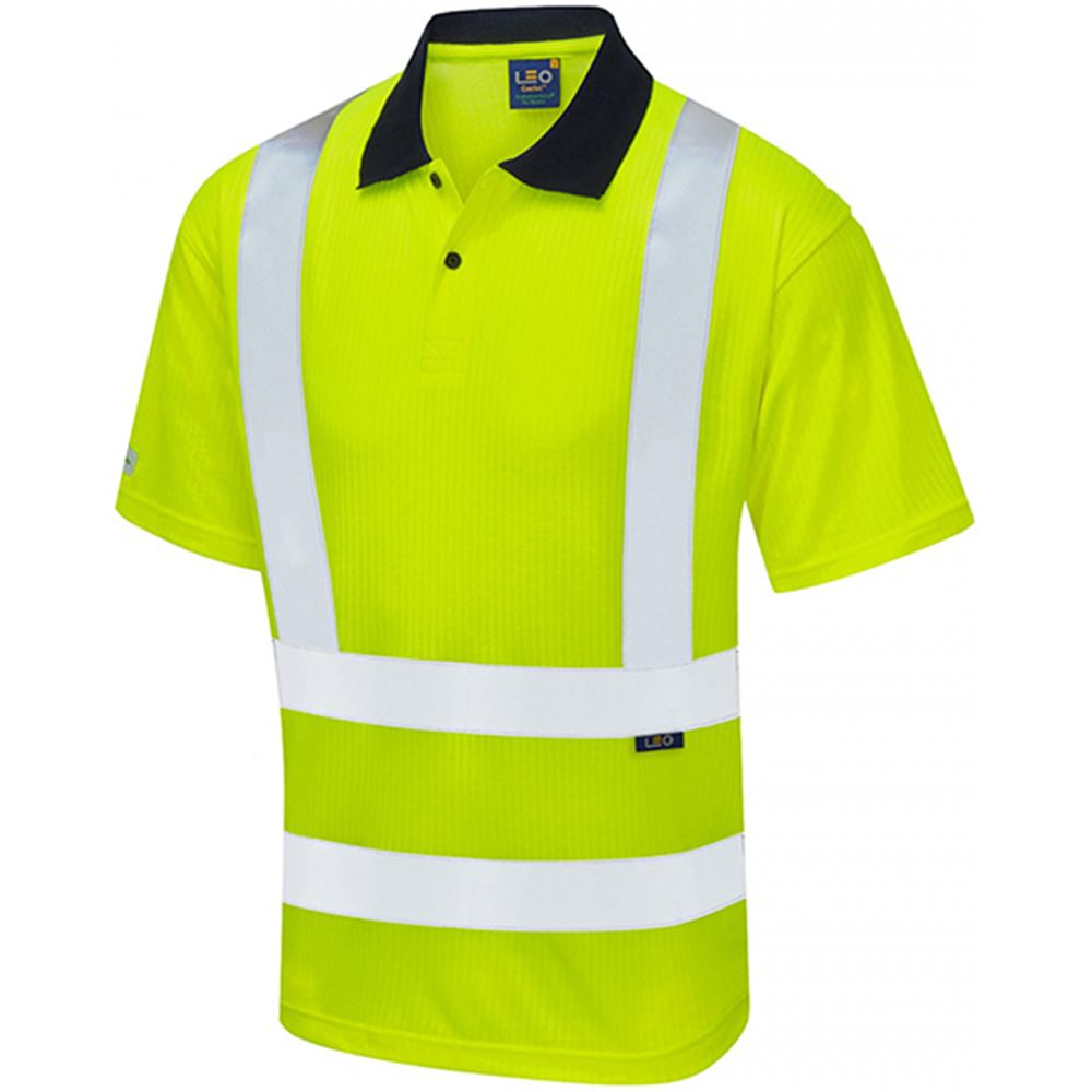 Leo Workwear Croyde Yellow Comfort EcoViz Hi Vis Polo Shirt