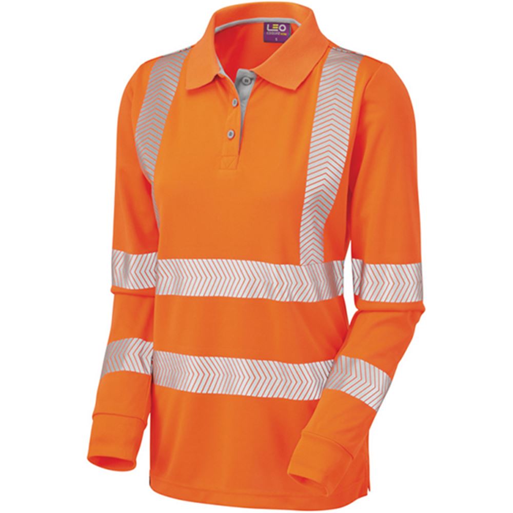 Leo Workwear Pollyfield Orange EcoViz Coolviz Ultra Women's Long Sleeve Hi Vis Polo Shirt