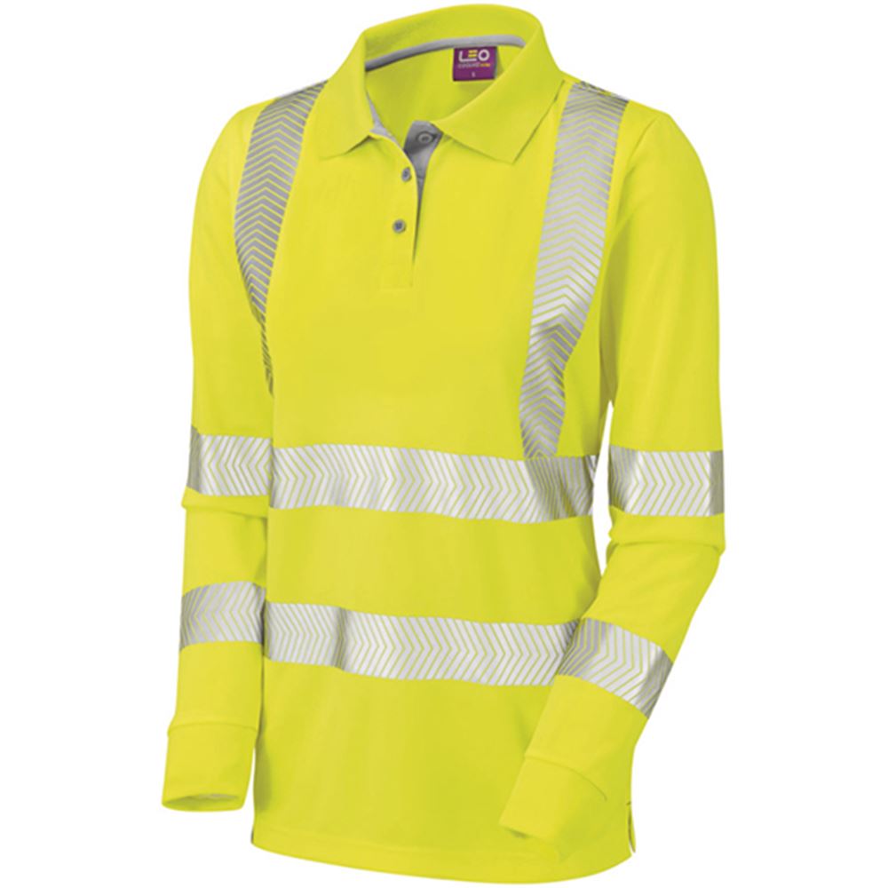 Leo Workwear Pollyfield Yellow EcoViz Coolviz Ultra Women's Long Sleeve Hi Vis Polo Shirt