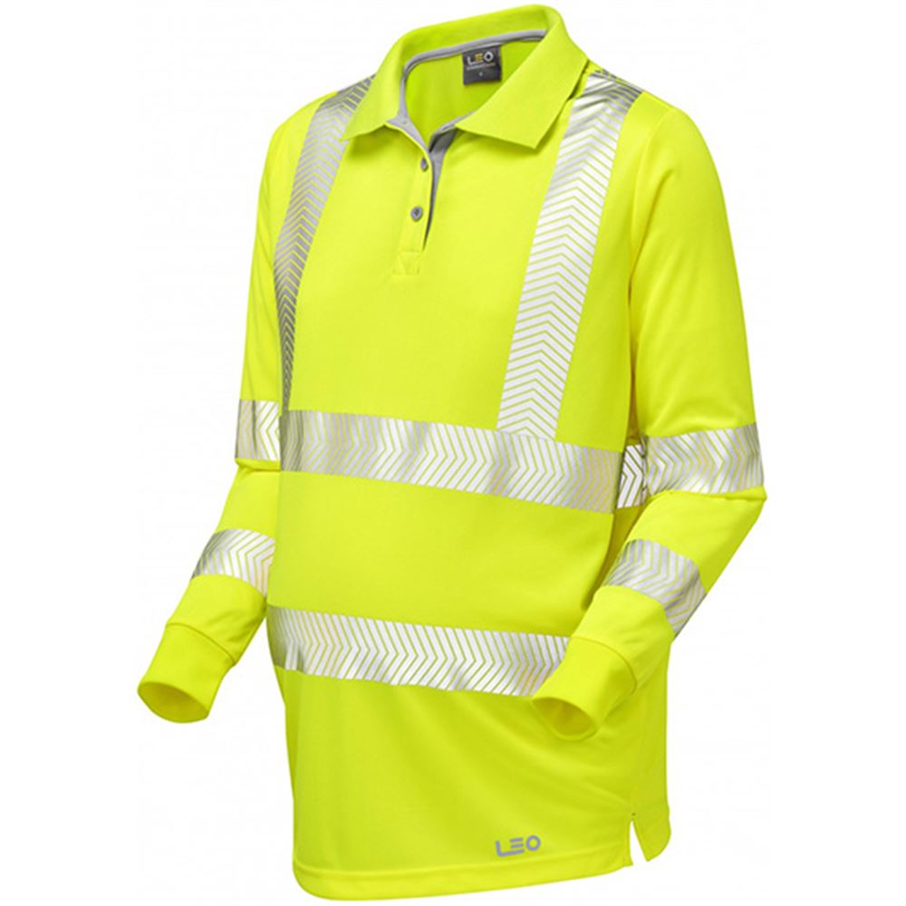 Leo Workwear Yarnacott Yellow EcoViz Coolviz Ultra Women's Hi Vis Long Sleeve Maternity Polo Shirt