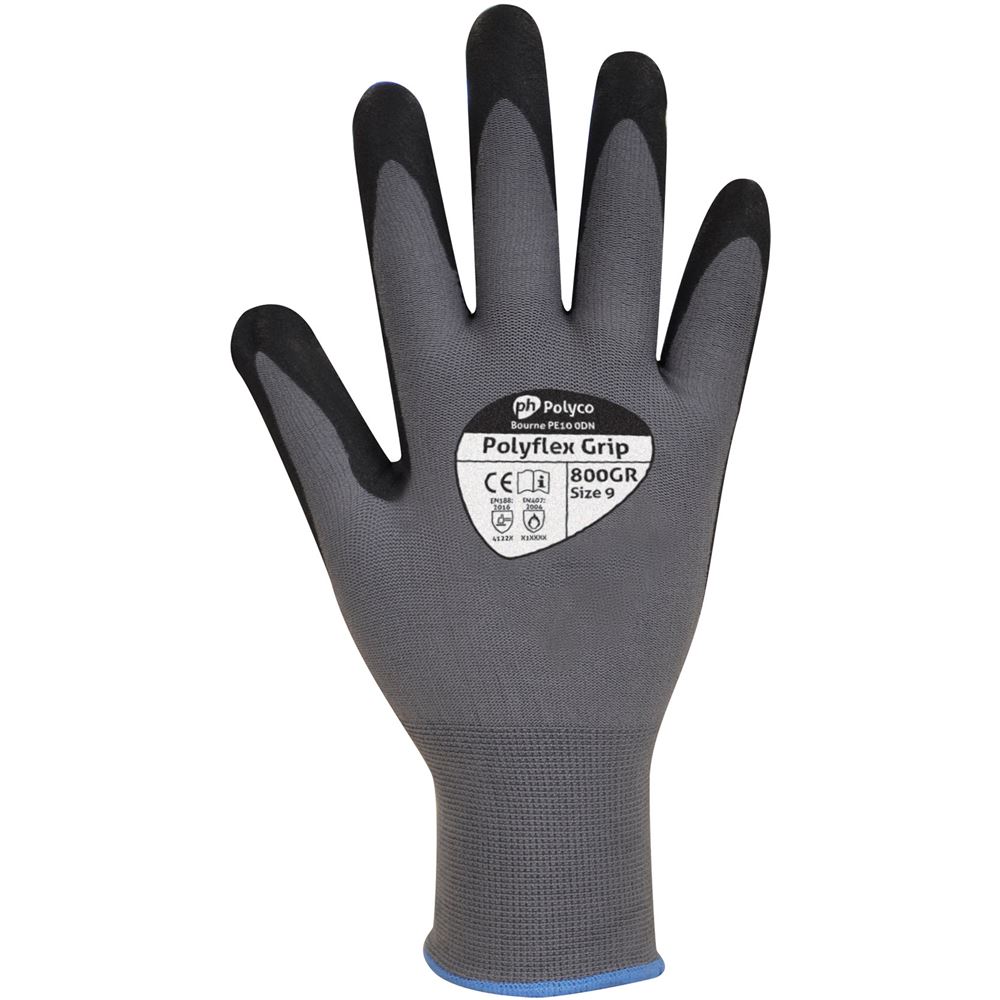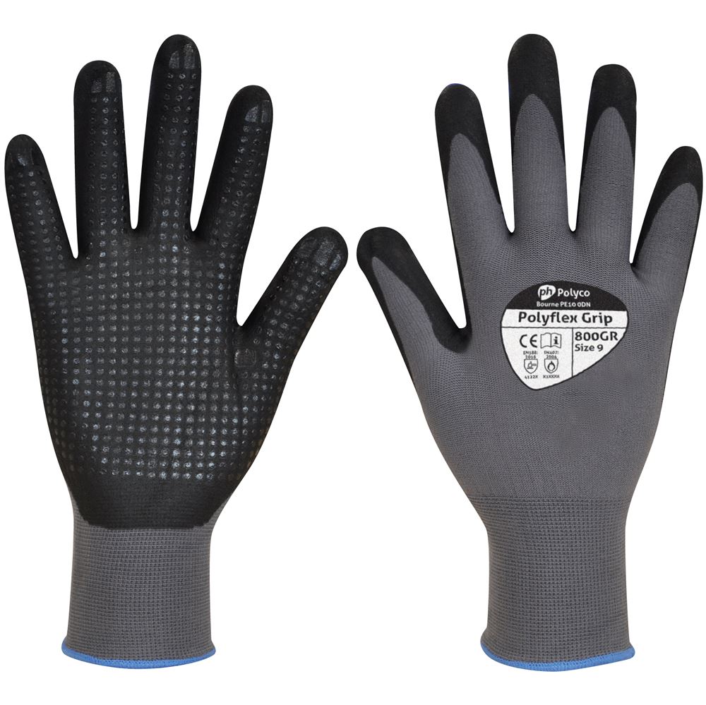 Polyco Polyflex Grip Gloves 800GR with Foamed Nitrile Dot Coating - 13g