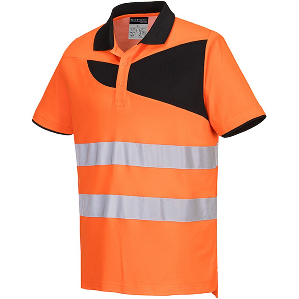 Portwest PW212 PW2 Orange/Black Polycotton Hi Vis Polo Shirt