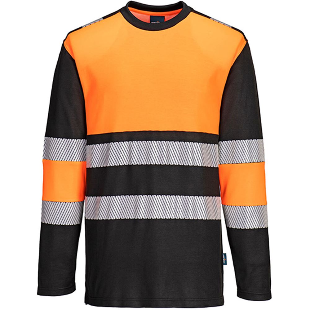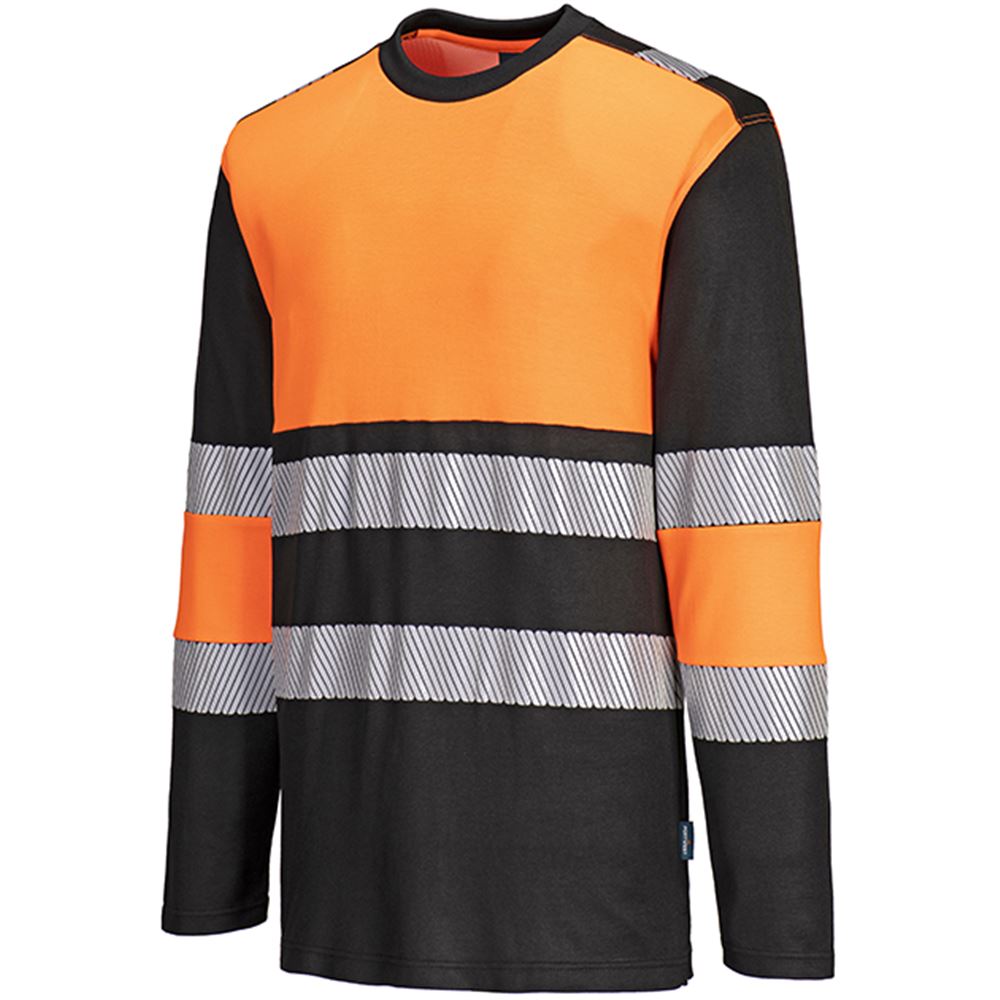 Portwest PW312 PW3 Orange/Black Cotton Comfort Long Sleeve Hi Vis T-Shirt