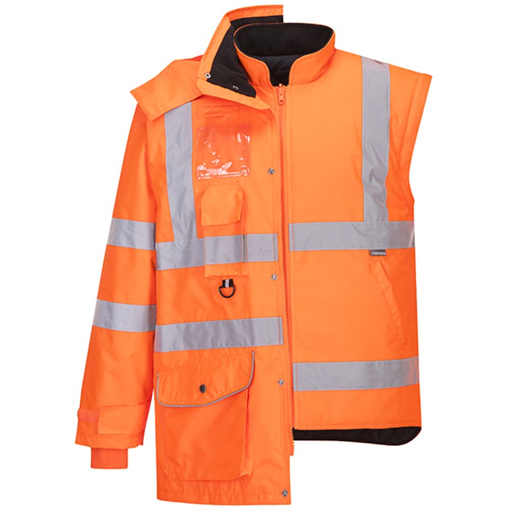 Portwest RT27 Orange Padded Waterproof 7 in 1 Hi Vis Jacket