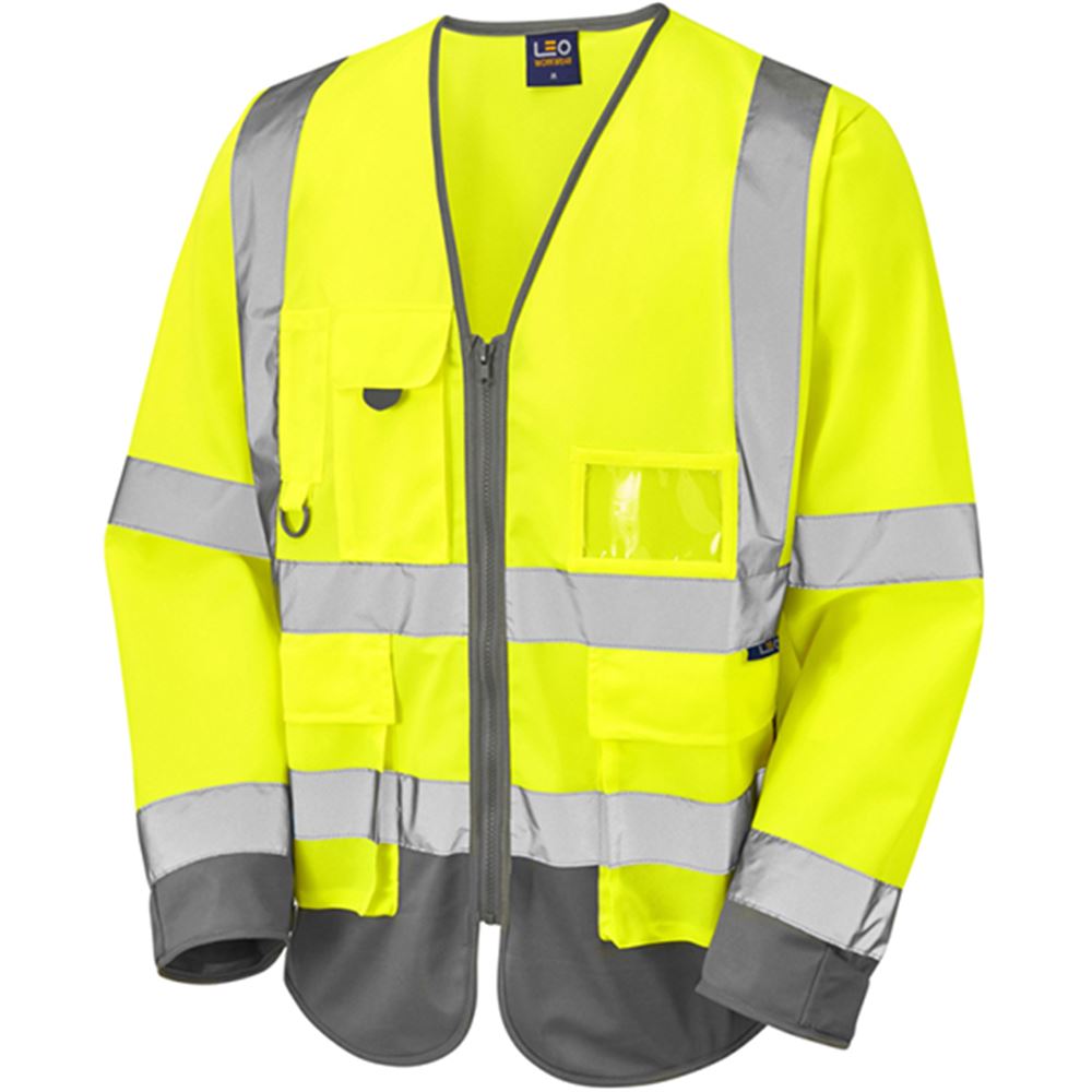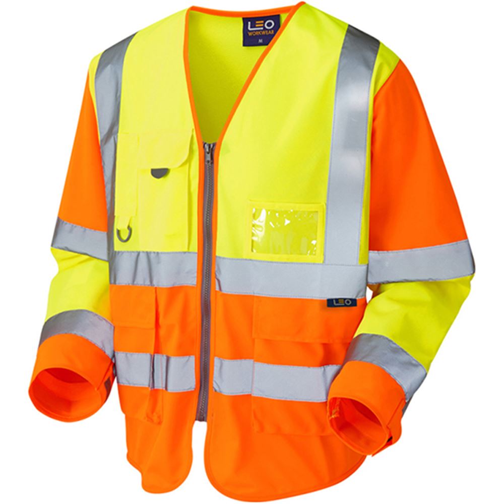 Leo Workwear Wrafton Two Tone Long Sleeve Superior Zipped Hi Vis Vest