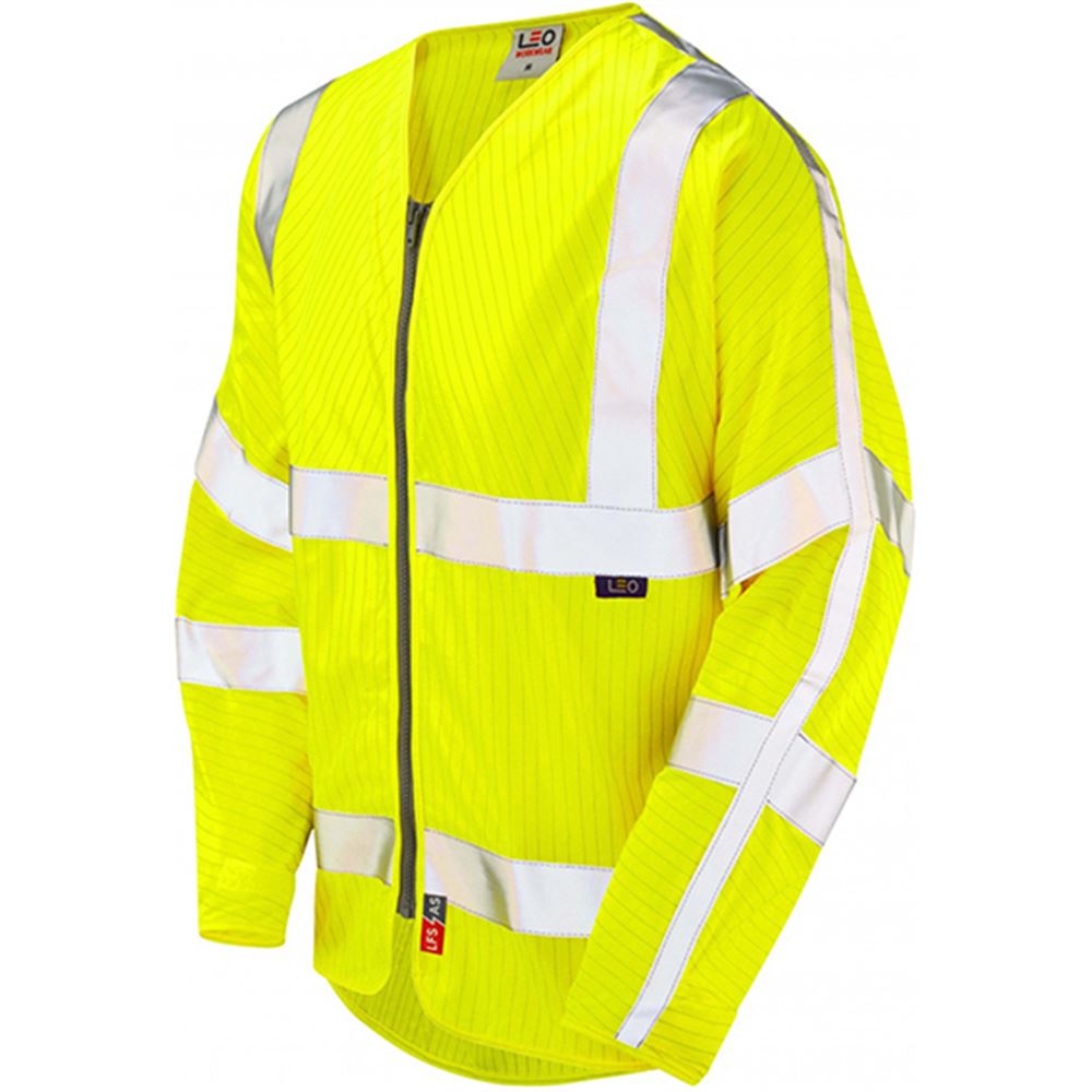 Leo Workwear Huish Yellow Flame Retardant & Anti Static Long Sleeve Zipped Hi Vis Vest