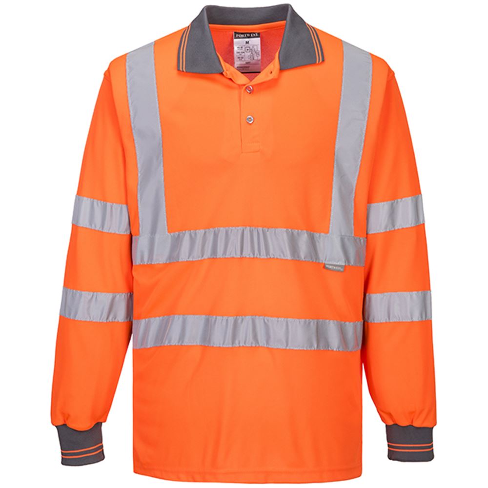 Portwest S277 Orange Long Sleeved Hi Vis Polo Shirt