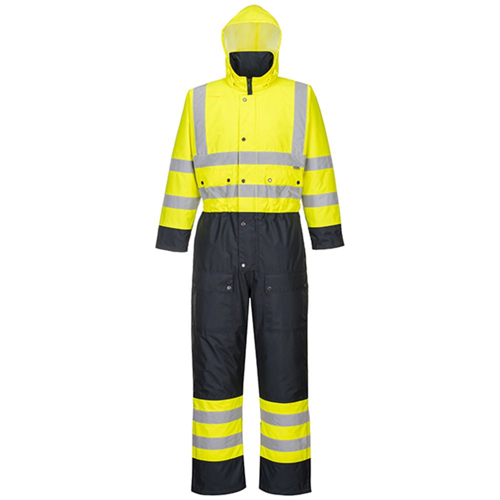 Portwest S485 Yellow/Navy Quilt Lined Hi Vis Thermal Waterproof Overalls