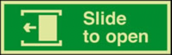 This photoluminescent slide to open left sign is part of our comprehensive range of sign products to make your business premises, office, factory, school or construction site a safe and secure place to work. As a leading supplier of safety signs where applicable our signs meet the latest EN ISO 7010 standards.