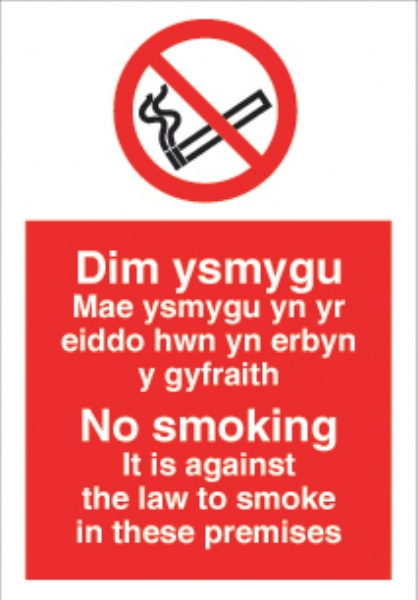 No Smoking welsh against law except designated