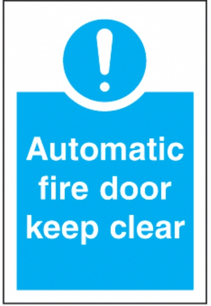 This automatic fire door keep clear sign is part of our comprehensive range of sign products to make your business premises, office, factory, school or construction site a safe and secure place to work. As a leading supplier of safety signs where applicable our signs meet the latest EN ISO 7010 standards.