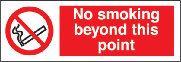 This no smoking beyond this point sign -landscape is part of our comprehensive range of sign products to make your business premises, office, factory, school or construction site a safe and secure place to work. As a leading supplier of safety signs where applicable our signs meet the latest EN ISO 7010 standards.
