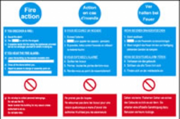This multi-lingual fire action notice sign is part of our comprehensive range of sign products to make your business premises, office, factory, school or construction site a safe and secure place to work. As a leading supplier of safety signs where applicable our signs meet the latest EN ISO 7010 standards.