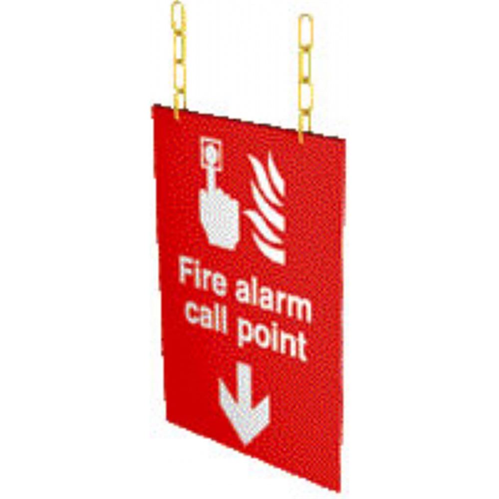 This fire alarm call point double sided hanging sign is part of our comprehensive range of sign products to make your business premises, office, factory, school or construction site a safe and secure place to work. As a leading supplier of safety signs where applicable our signs meet the latest EN ISO 7010 standards.