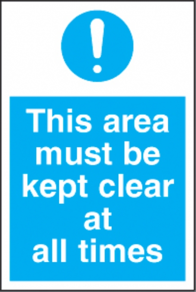 this area must be kept clear all times