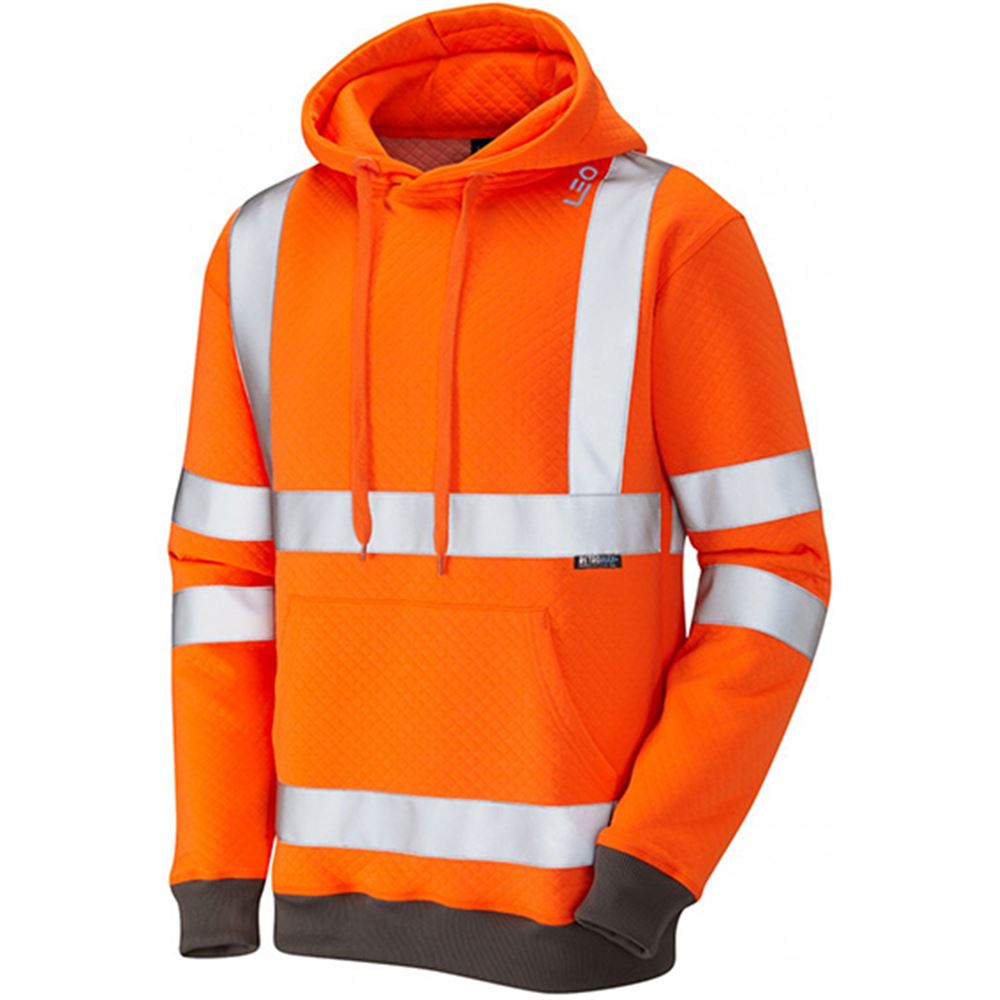 Leo Workwear Goodleigh Orange EcoViz Hi Vis Hooded Sweatshirt