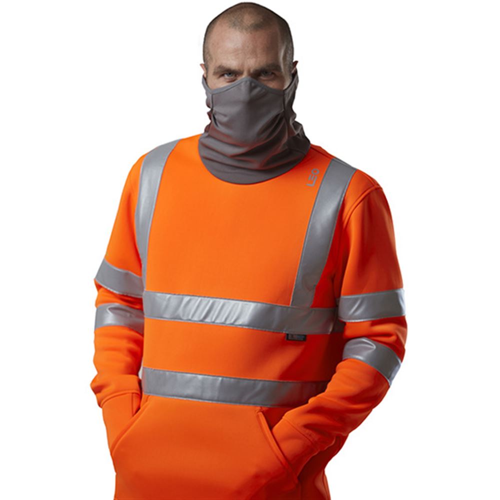 Leo Workwear Combesgate Orange EcoViz Stretch Hi Vis Snood Sweatshirt