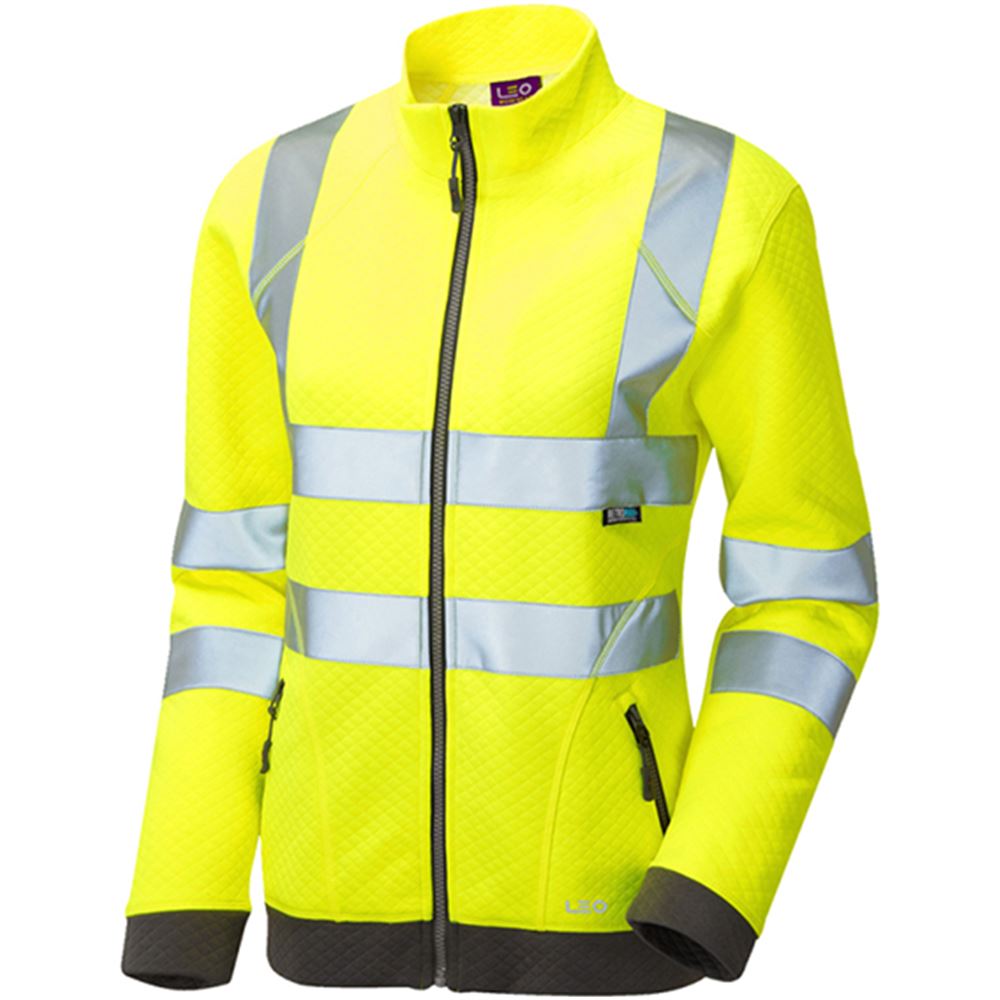 Leo Workwear Hollicombe Yellow EcoViz Polycotton Zipped Women's Hi Vis Sweatshirt